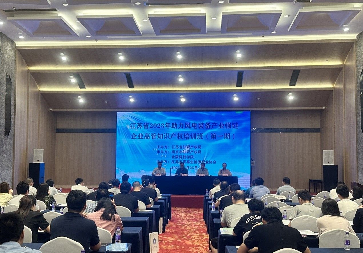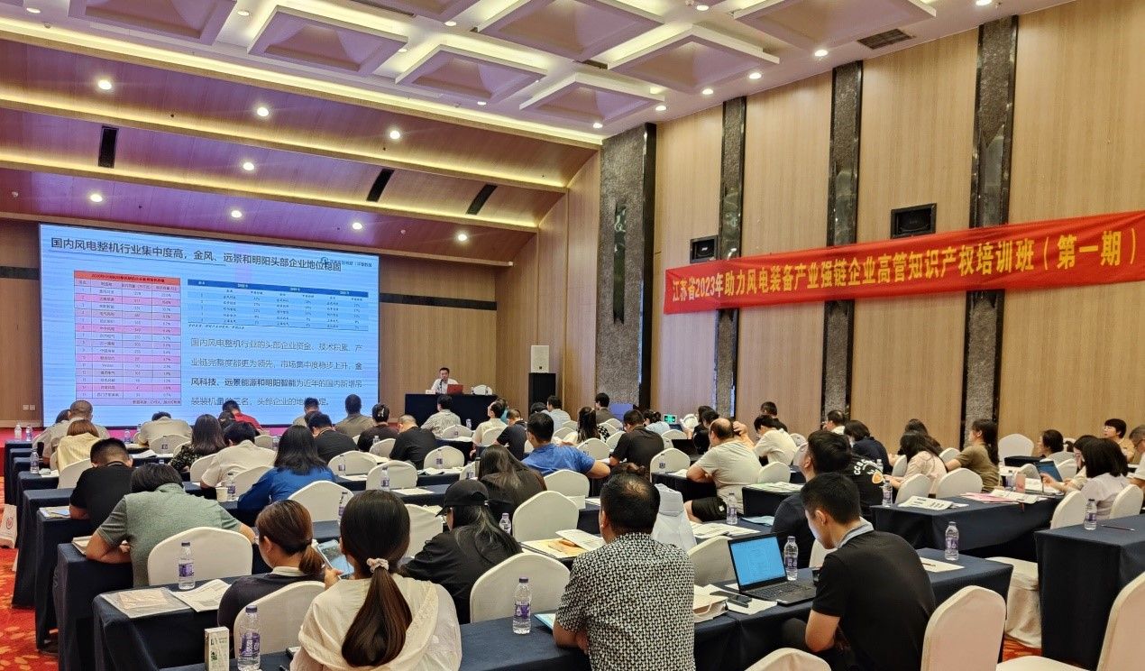 承办的江苏省2023年助力风电装备产业强链企业高管知识产权培训(第一期)成功举办。包括南高齿、南瑞继保、金风科技等龙头企业在内的风电装备产业链相关企业高管90余人参加了为期2天的培训。