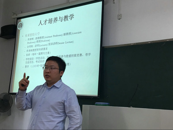 讲座中,牛皋博士主要讲述了美国大学的教学、科研现状,以及美国大学教师如何做好教学与科研间的平衡等问题,并以他所从事的精算专业为例,详细分析了美国大学在人才培养、教学方面与国内高校的差异性。此外,牛博士还简要介绍了他所就职的美国康涅狄格大学金德森精算中心正在进行的研究项目,使广大教师对精算行业有了全新的认知。