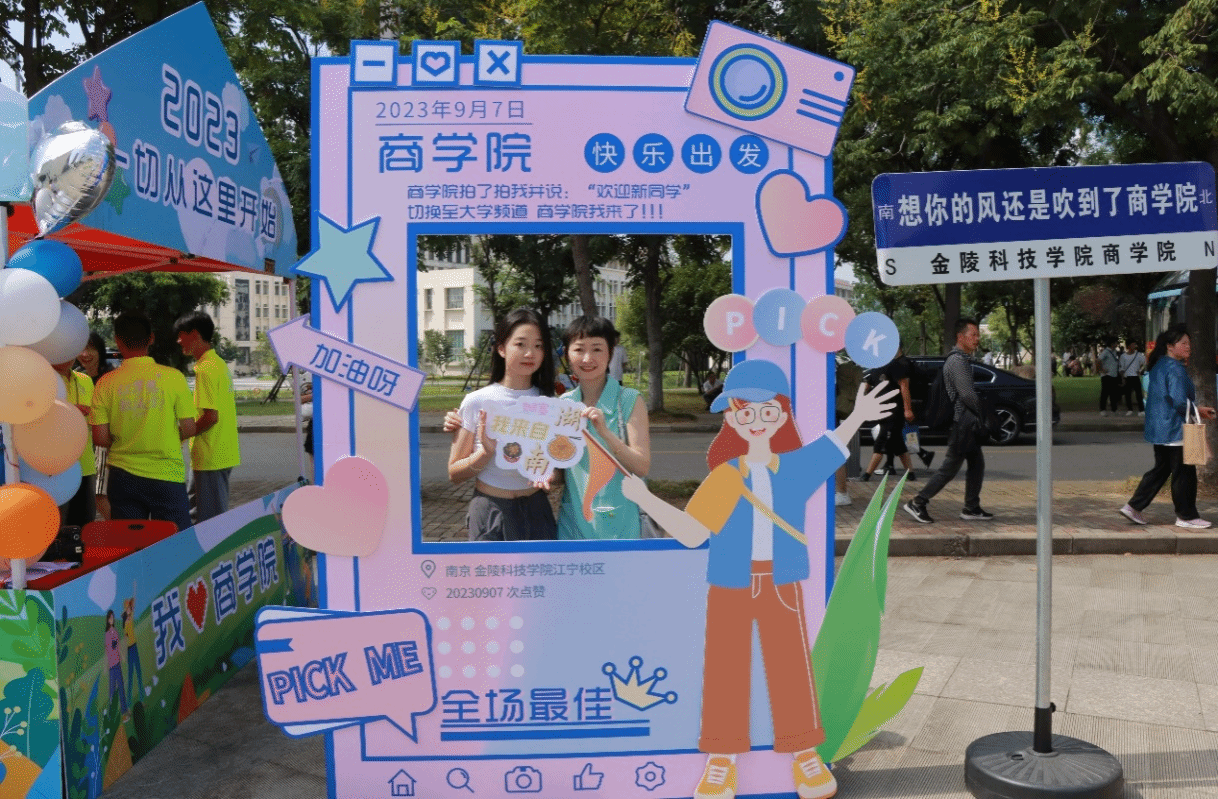 报道现场,新生们被学院的特色打卡相框所吸引,大家纷纷举着自己家乡的手牌合影留念。此外,P站视频