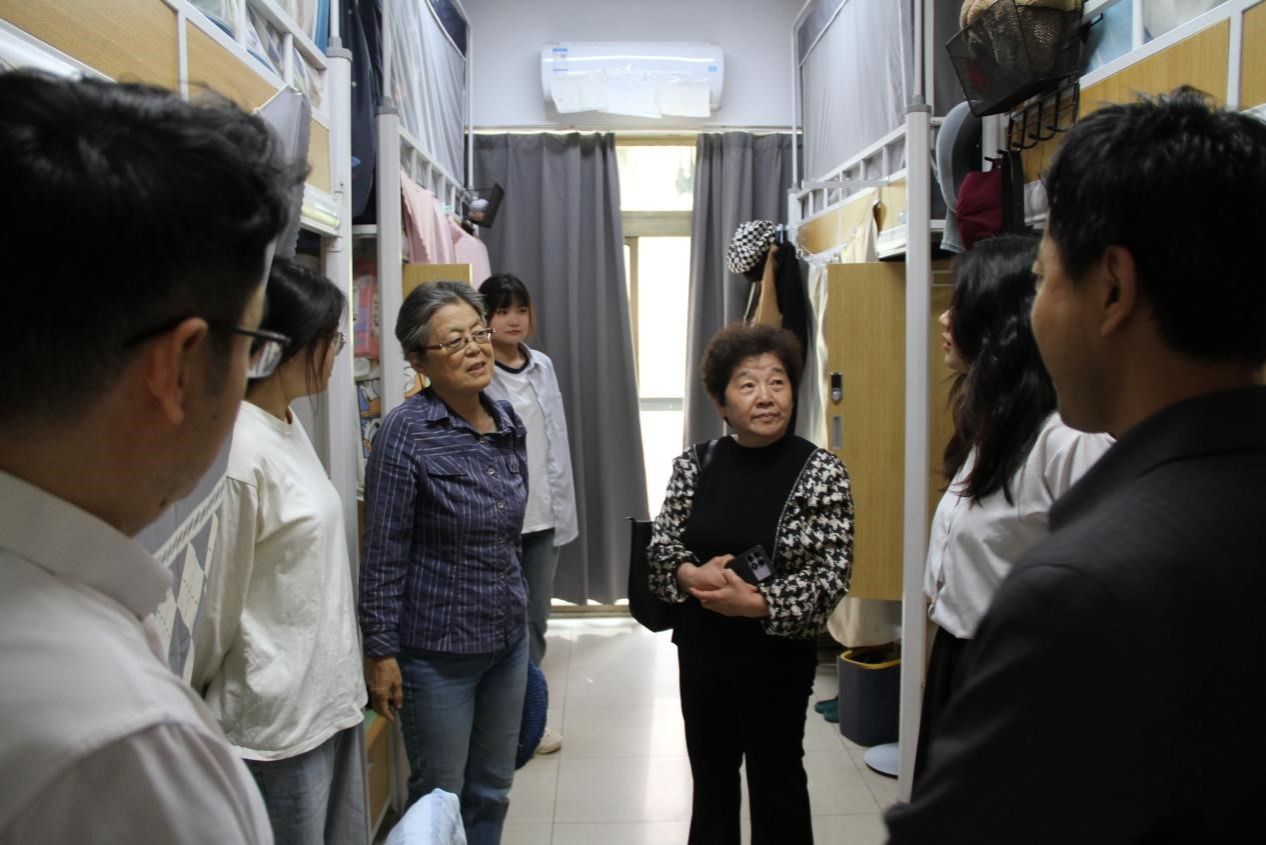 关工委副主任陶惠凤两位老同志,深入学生宿舍开展走访活动,并与部分学生党员、学生骨干和积极分子们在北区4栋一站式活动室开展了面对面交流谈心,将校院两级关工委的温暖和关怀传递给广大学生。
