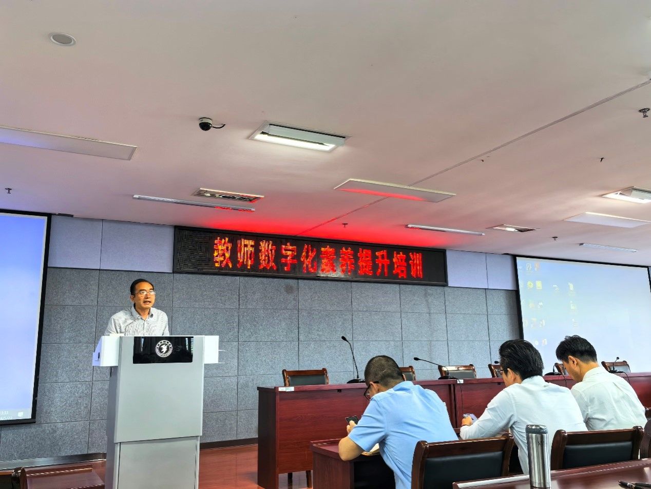 会议第一阶段,实训中心副主任杜新征从教育数字化转型现状、教师数字素养和技术能力结构、教师数字素养提升途径、多元化数字教学方法与手段创新等方面作了专题分享,并以P站视频