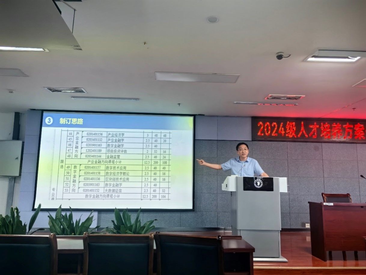 集中交流了9个本科专业2024级人才培养方案修订工作。会上,财务管理专业负责人杨昀教授围绕“学科大融合”这一核心本质,紧扣“以学生为核心的教育新理念”、“学科跨越式发展的新路径”、“人才培养的新定位”三个方面的内涵特征,详细介绍了财务管理专业2024级人才培养方案在培养目标、毕业要求、培养目标与毕业要求矩阵关系、课程体系与毕业要求矩阵关系、课程增减等方面的修订情况。随后,刘小萌副教授、韦森副教授、王翯华副教授、汪浩教授、朱玮玮副教授、苏丽琴教授、李朝晖教授、黄作明教授分别对2024级会计学、市场营销、物流管理、金融学、国际经济与贸易、电子商务、金融工程、审计学专业人才培养方案修订过程进行汇报交流。