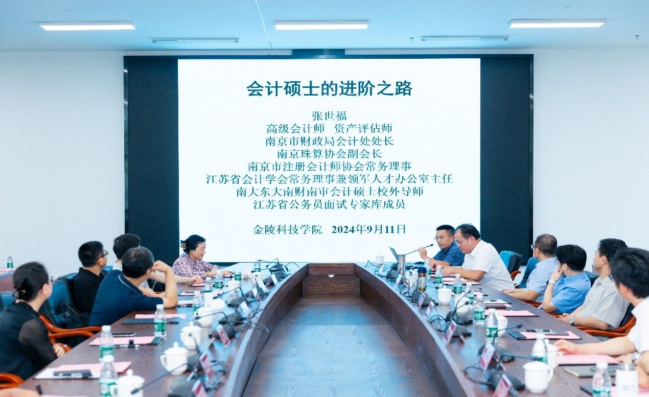 在科技楼3号楼110会议室举行产教融合对接交流会。南京市财政局会计处处长张世福、南京市注册会计师协会秘书长王益民、江苏省国资委派驻中江集团财务专员平焱、南京大地建设(集团)董事长伍贻安、立信会计师事务所江苏分所所长伍敏、江苏兴瑞会计师事务所所长许胜利、南京永宁会计师事务所所长杨晓琴、苏美达资本投资总监黄世文、江苏省环境科学研究院财务部主任柴小莺等领导、专家出席会议。P站视频