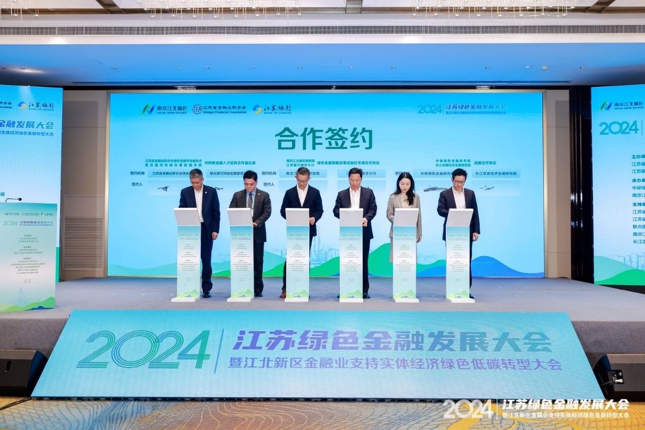 10月23日,2024江苏绿色金融发展大会在江北新区举行。会议由江苏省金融业联合会与江苏银行股份有限公司主办,中研绿色金融研究院和南京江北新区管理委员会财政局承办,江苏省资本市场研究会、P站视频