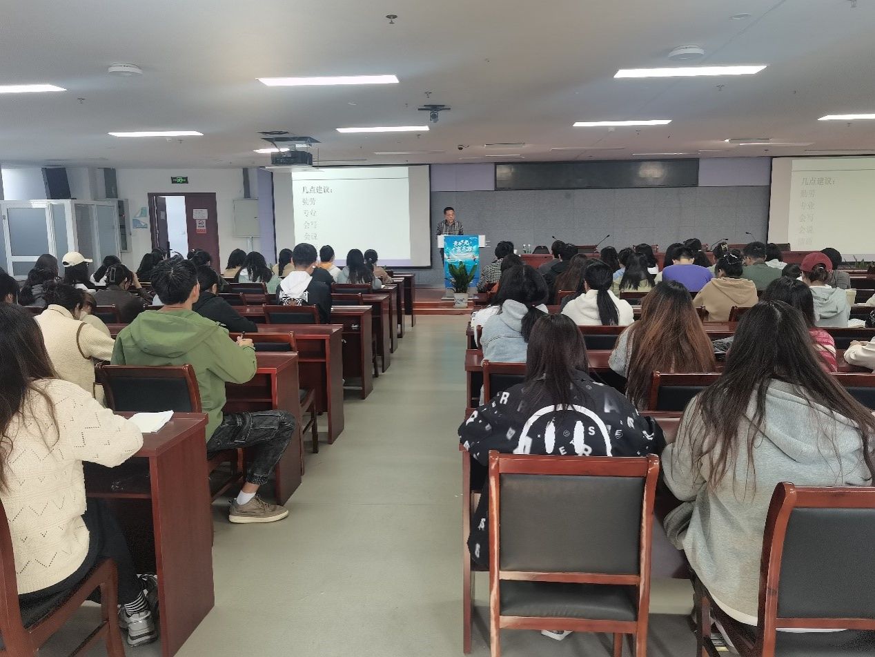 张世福处长结合南京市会计行业发展和人才需求状况,从多个维度探讨了会计硕士的职业发展问题。张处长首先展示了会计行业人才数据,指出会计专业学生面临的竞争压力。但同时他也分享了一些学生的成功案例,勉励同学们提前做好职业规划,不断奋进,助力未来职业发展。然后张处长详细介绍了专业、职称、职务、发展等多个层面的进阶之路,给同学们提供了很多宝贵的建议。最后,张处长与同学们进行了互动,同学们踊跃参与并获得了更切实的体会。
