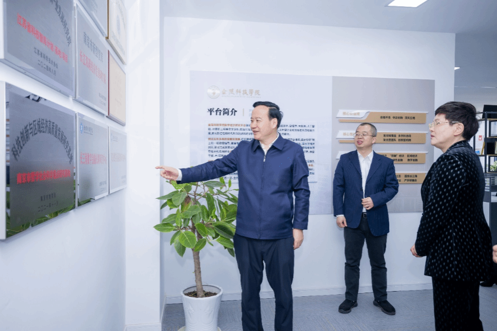 智库平台在课题研究、成果转化、人才培养等方面取得的发展成效给予了充分肯定。贺建湘表示,近年来学校智库立足地方,紧扣行业需求,形成的政产学研用立体化战略协同发展体系令人耳目一新,具有很强的启发启迪意义。刘西忠表示,学校智库建设特色鲜明、定位准确、结构合理、成果丰富,充分发挥了学科交叉融合优势,在服务南京、服务江苏中精准发力,成功打造具有金科特色的智库品牌。