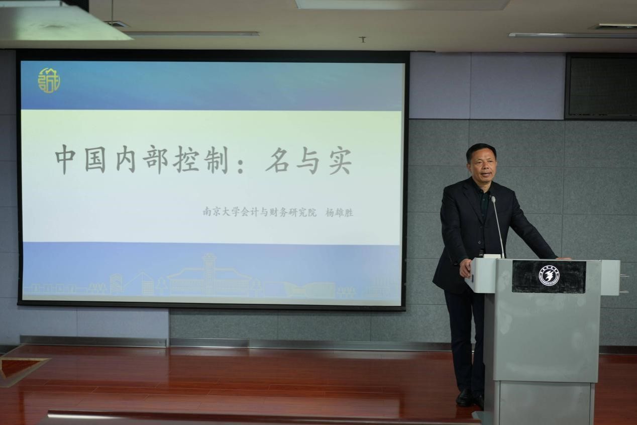 杨雄胜教授带来题为“中国内部控制:名与实”的主题报告。他首先介绍了内部控制的核心定义,深入剖析了内部控制在业务、经营、管理三个方面为实现有效、合法、可靠的组织运转提供保障。其次,分析COSO内部控制基本框架,搭建“权”、“事”、“情”三维框架,并创新型地提出现行内部控制的核心使命需要融入“人类价值观”。人生观:义与利,审美观:美与丑,道德观:善与恶。最后,杨雄胜教授指出目前中国年内部控制面临的两大挑战:一是面临信息化(区块链)挑战,二是构建中国自主知识体系的内部的控制需要融入仁义、君子之道等中国优秀传统文化。讲座的最后,在场师生踊跃提问,杨教授一一解答,现场气氛热烈。
