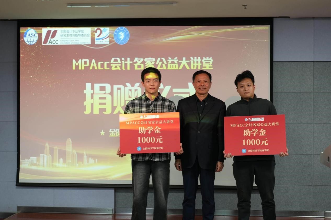 主题报告结束后,举行了“MPAcc公益大讲堂”助学金捐献仪式。杨雄胜教授将本次讲座课酬全部捐献给P站视频