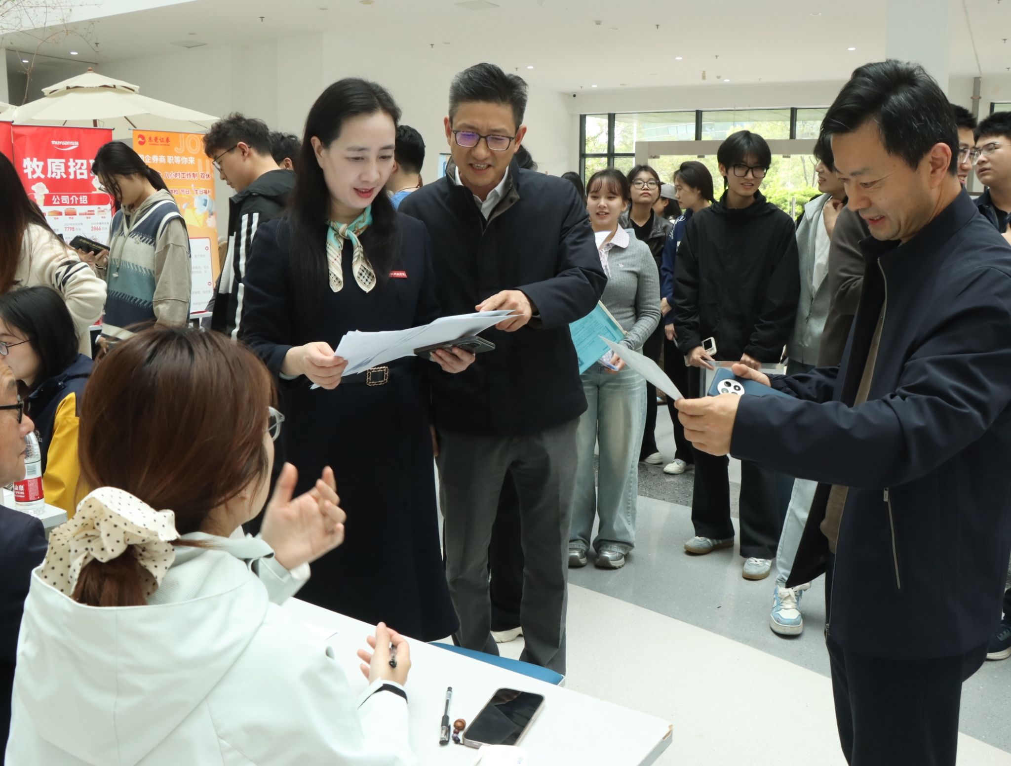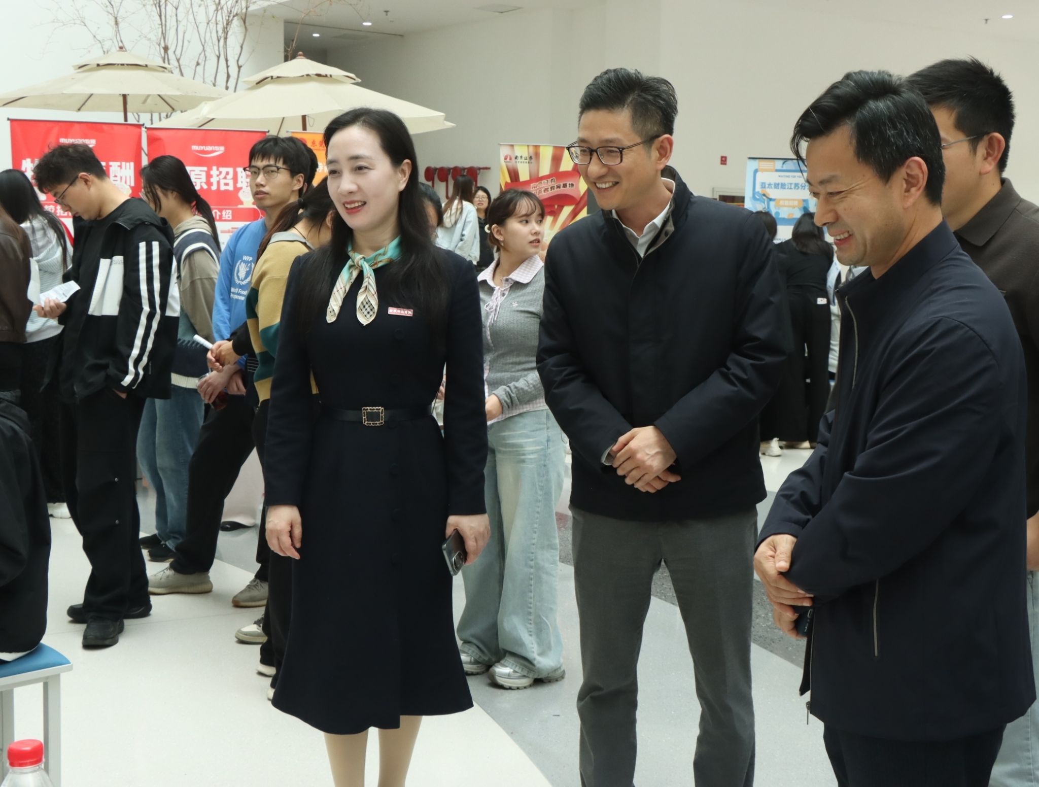 在三号科技楼一楼成功举办2026 届经管类毕业生春季专场招聘会。副校长顾晓燕亲临招聘会现场调研指导就业工作,并与用人单位代表、毕业生亲切交流。