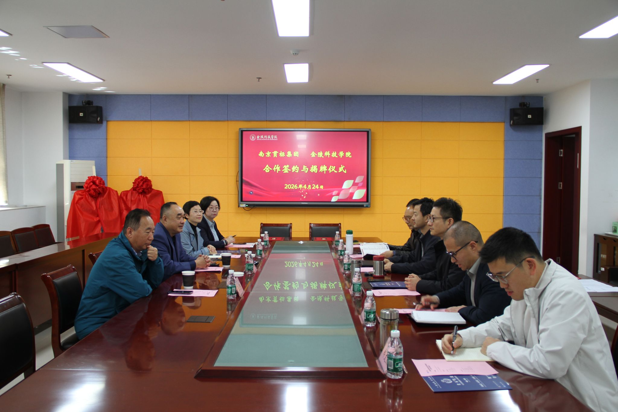 与南京贯标集团合作框架协议签约暨揭牌仪式在科技楼3号楼409会议室举行。南京贯标集团董事长陈健,副总经理金海容、规划发展委主任王欣荣、办公室主任张娟,P站视频