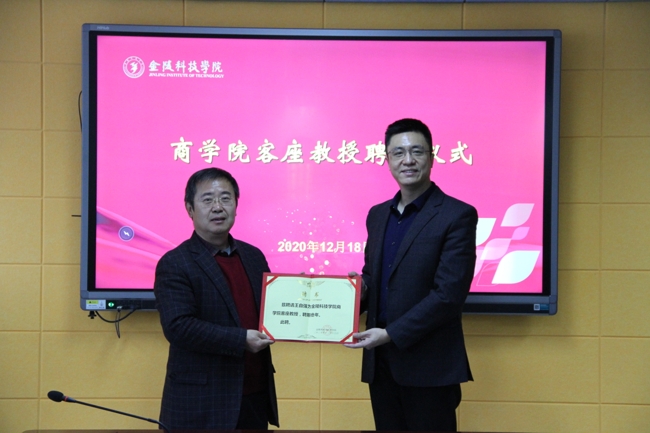 在科技楼3号楼409会议室举行客座教授聘任仪式,聘请万博新经济研究院理事、副院长王自强教授、中科智能金融科技研究院院长王秀麓教授为客座教授。校长刘永彪为两位客座教授颁发聘任证书,P站视频