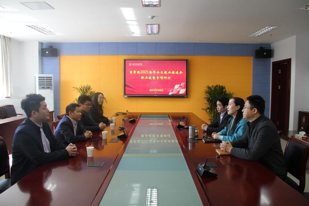 409会议室举行2021届毕业生就业推进座谈会,就2021届毕业生就业推进及职业技能发展等事项进行了研讨。