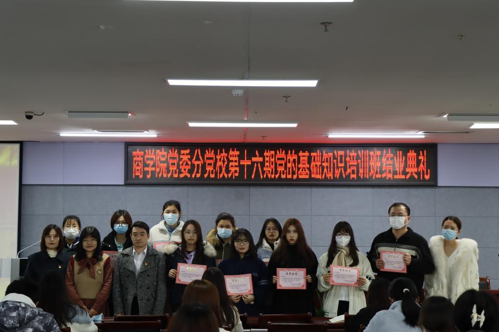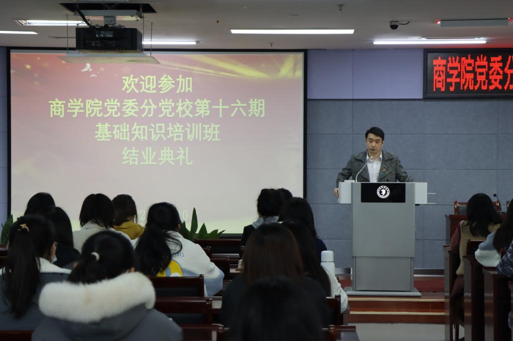 党委学生党支部书记潘阳、沈皆希、李竹叶、黄丹丽,以及70名学员代表参加。会上,黄丹丽老师对本期培训班总体情况进行了析总结,并宣读优秀学员表彰决定,与会领导、老师为优秀学员颁发证书。优秀学员代表20国际经济与贸易(2)班陈丹睿同学和21会计学(1)班黄烨同学分别发言,表明今后将更加严格要求自己,积极接受党组织考验,争取早日加入中国共产党,并对党组织和授课老师表示感谢。受学院党委和分党校委托,孙亮副书记对培训班的成功举办和结业学员顺利完成学习实践任务表示祝贺,并对学员们提出以下三点要求:一是要树立远大目标,珍惜时光,脚踏实地,从点滴做起;二是要以党员的标准要求自己,力争全面发展;三是发挥模范带头作用,从自己做起,带动周围同学,为营造良好学风增砖添瓦。