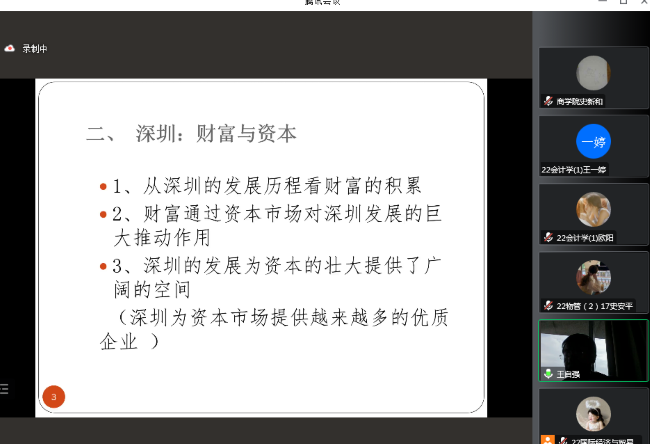 学生分别进行题为《财富积累和资本流向》和《如何做好职业规划》的线上学术报告。讲座由P站视频