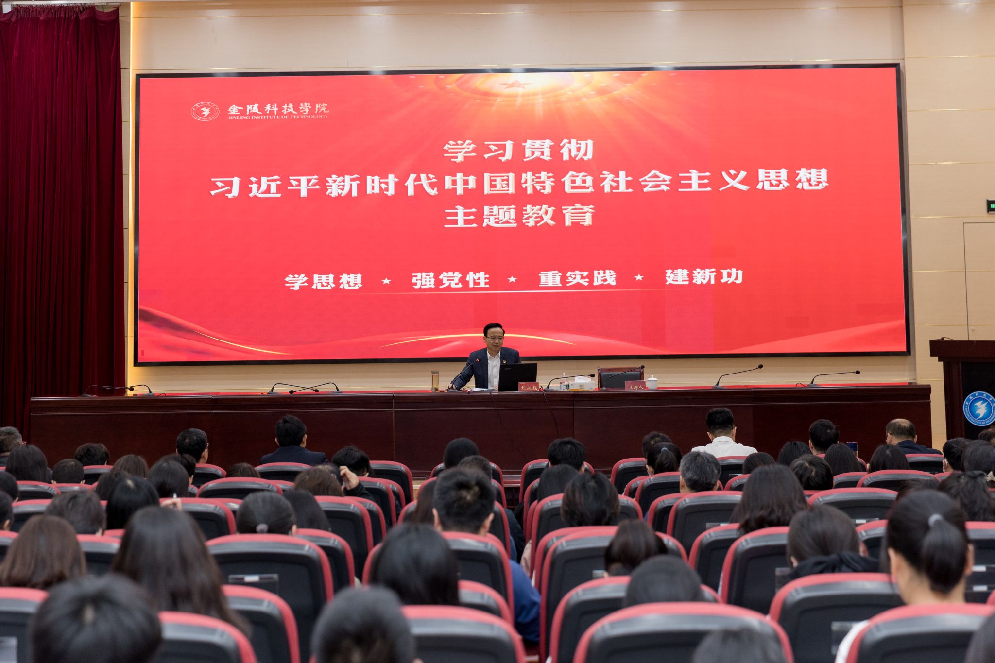 5月24日,校长刘永彪在江宁校区科技楼报告厅为师生党员讲学习贯彻习近平新时代中国特色社会主义思想主题教育专题党课,P站视频
