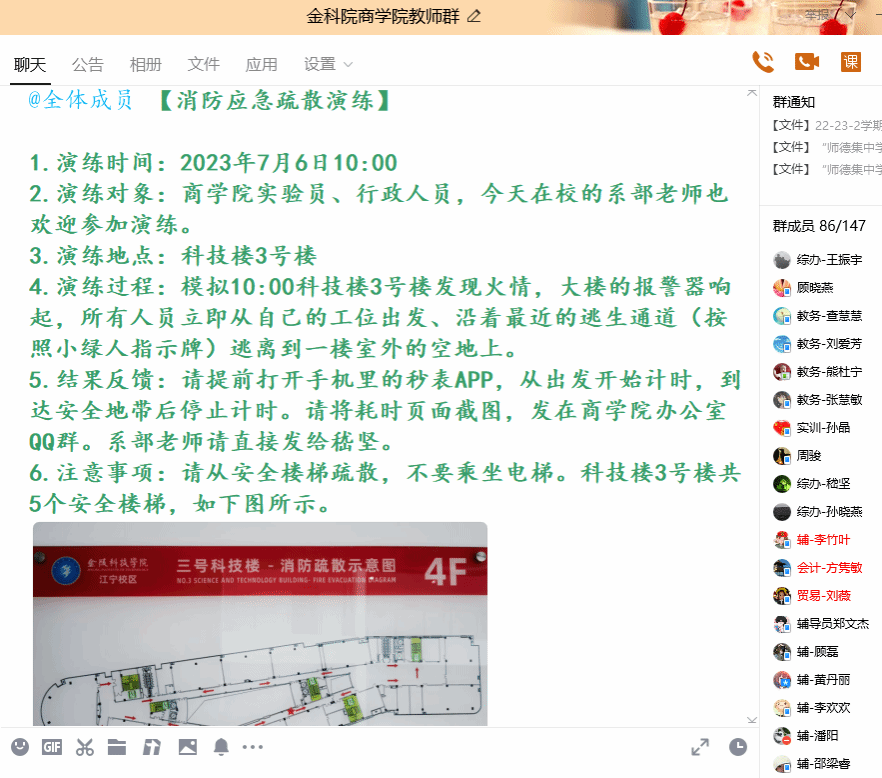 图2:【消防应急疏散演练】QQ群通知