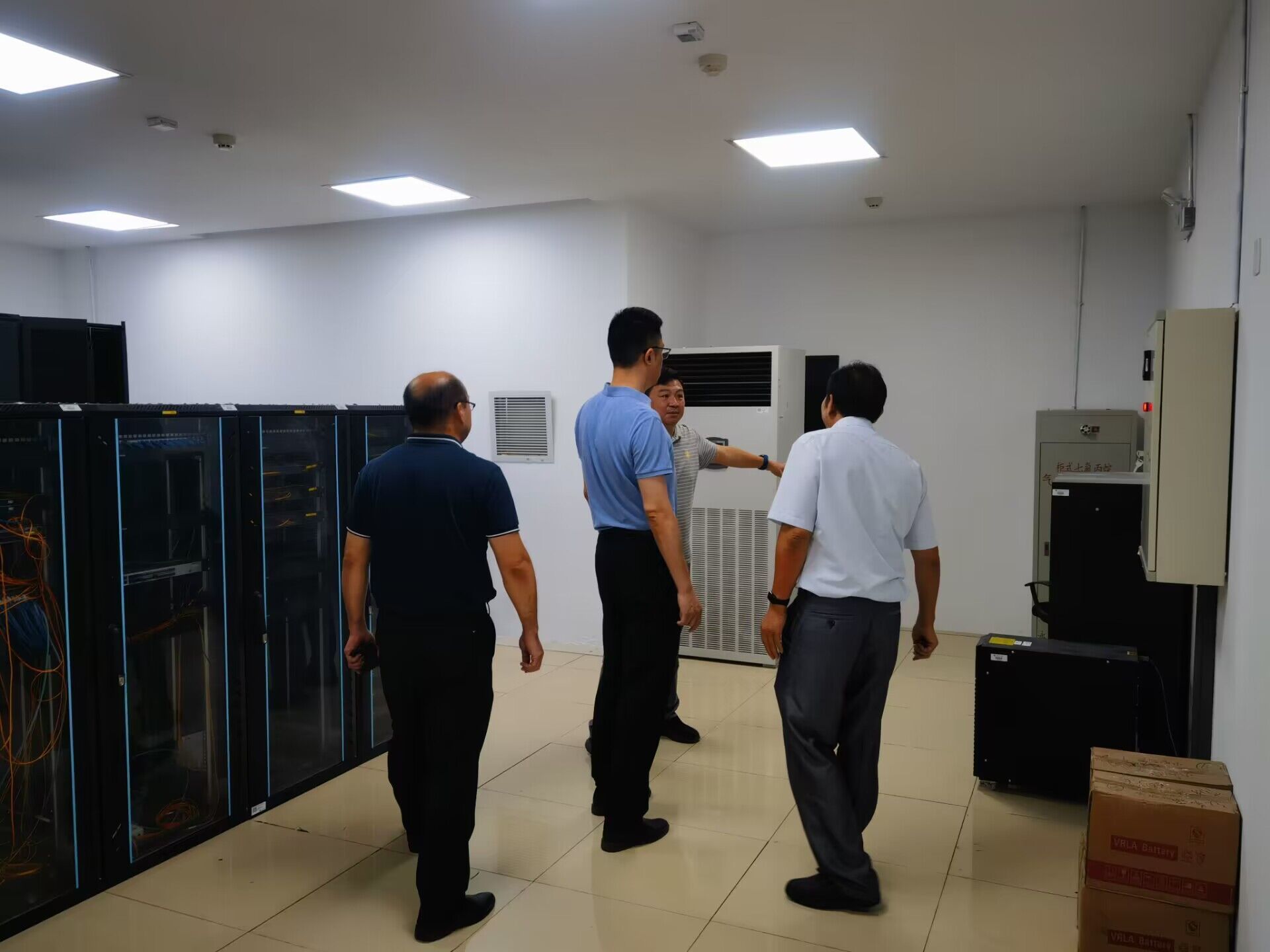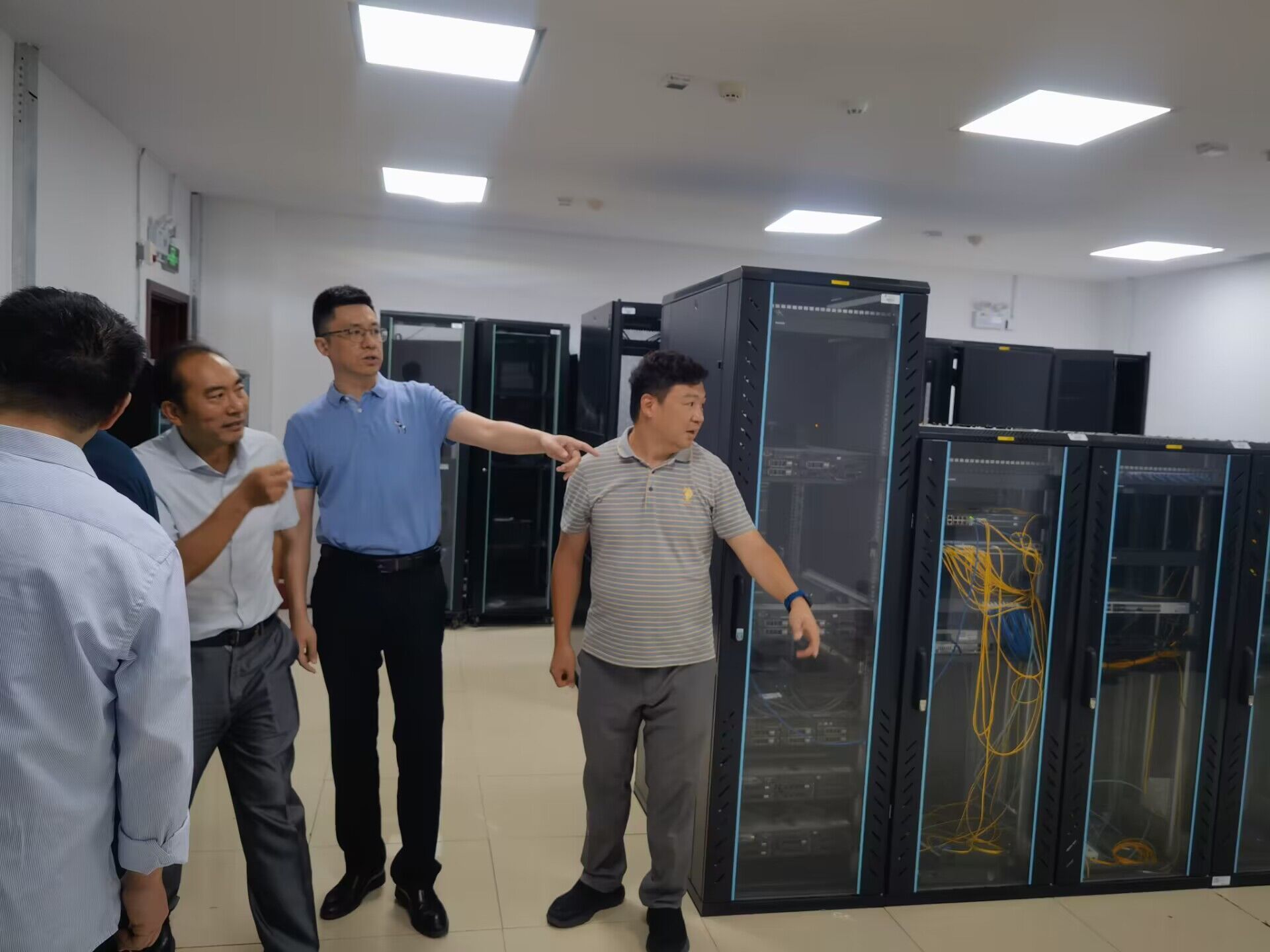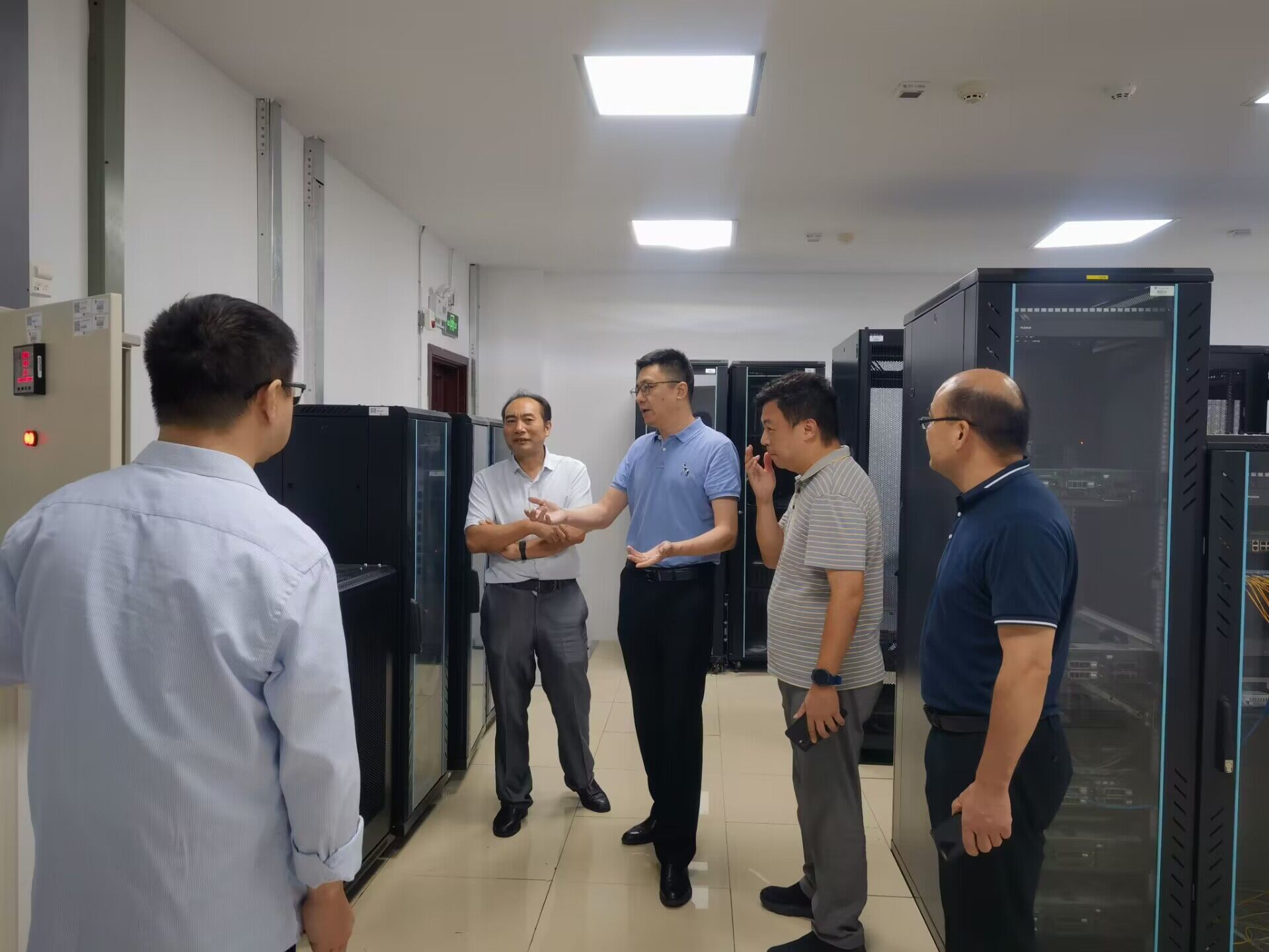2023年9月1日,周骏书记率领陶应虎副院长、史新和副院长等学院领导班子,查看206服务器机房消防系统更新情况。