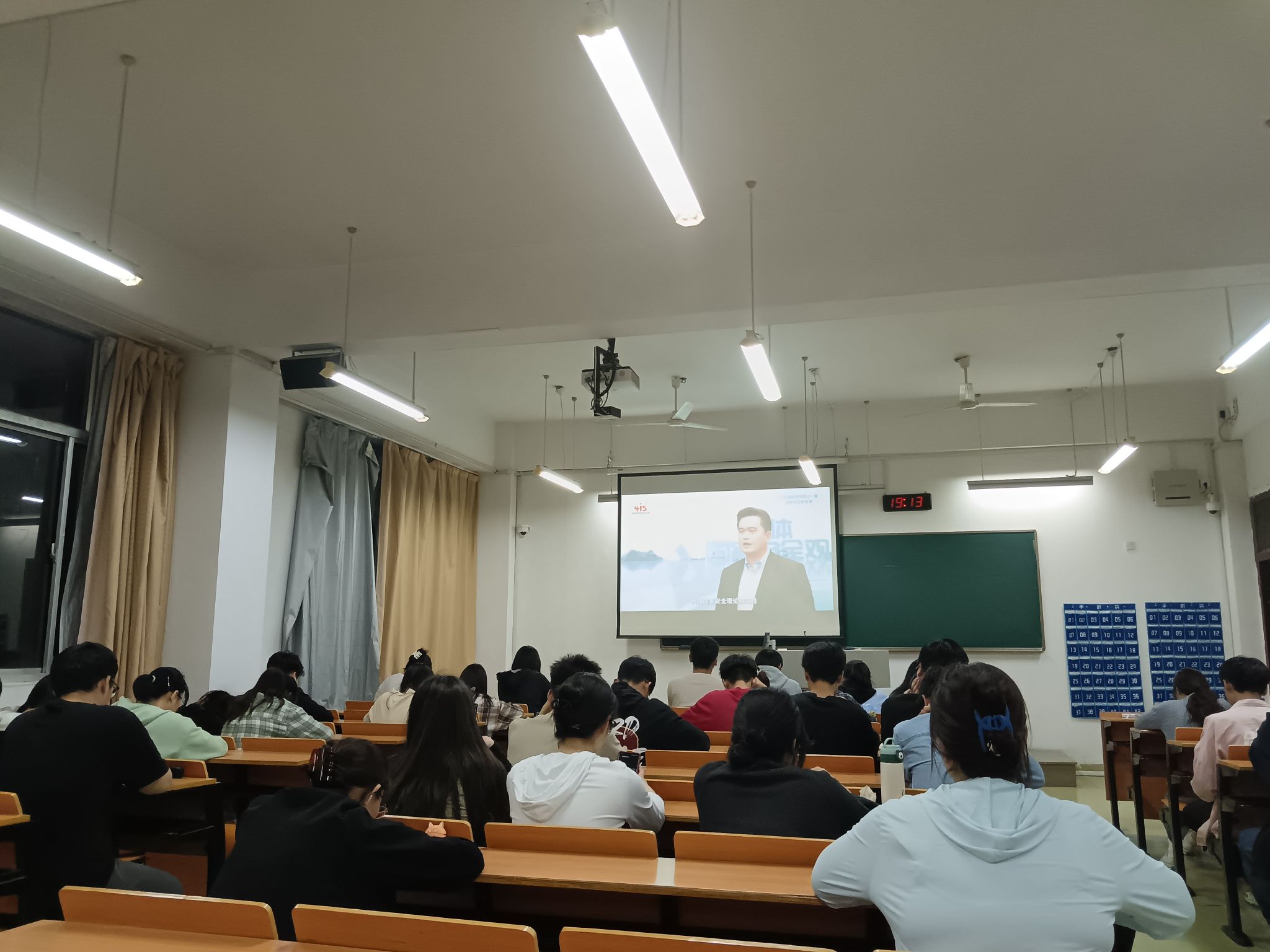 4月15日(周一)晚上七点,组织大一至大三各班生活委员,在北区1511教室,集中观看中国大学生在线官网(//dxs.moe.gov.cn)及中国大学生在线视频号、微博、B站、抖音等直播平台发布的国家安全系列公开课,其余同学自行组织观看国家开放大学终身教育平台(//le.ouchn.cn/Event/415)免费播放的国家安全系列公开课。