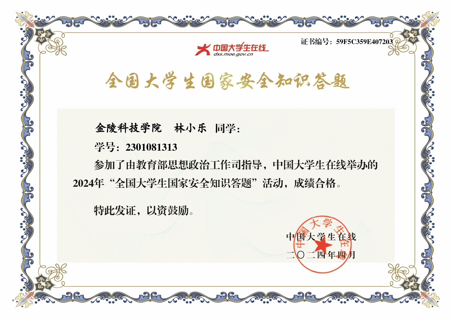 2.组织参加"全国大学生国家安全知识答题"。