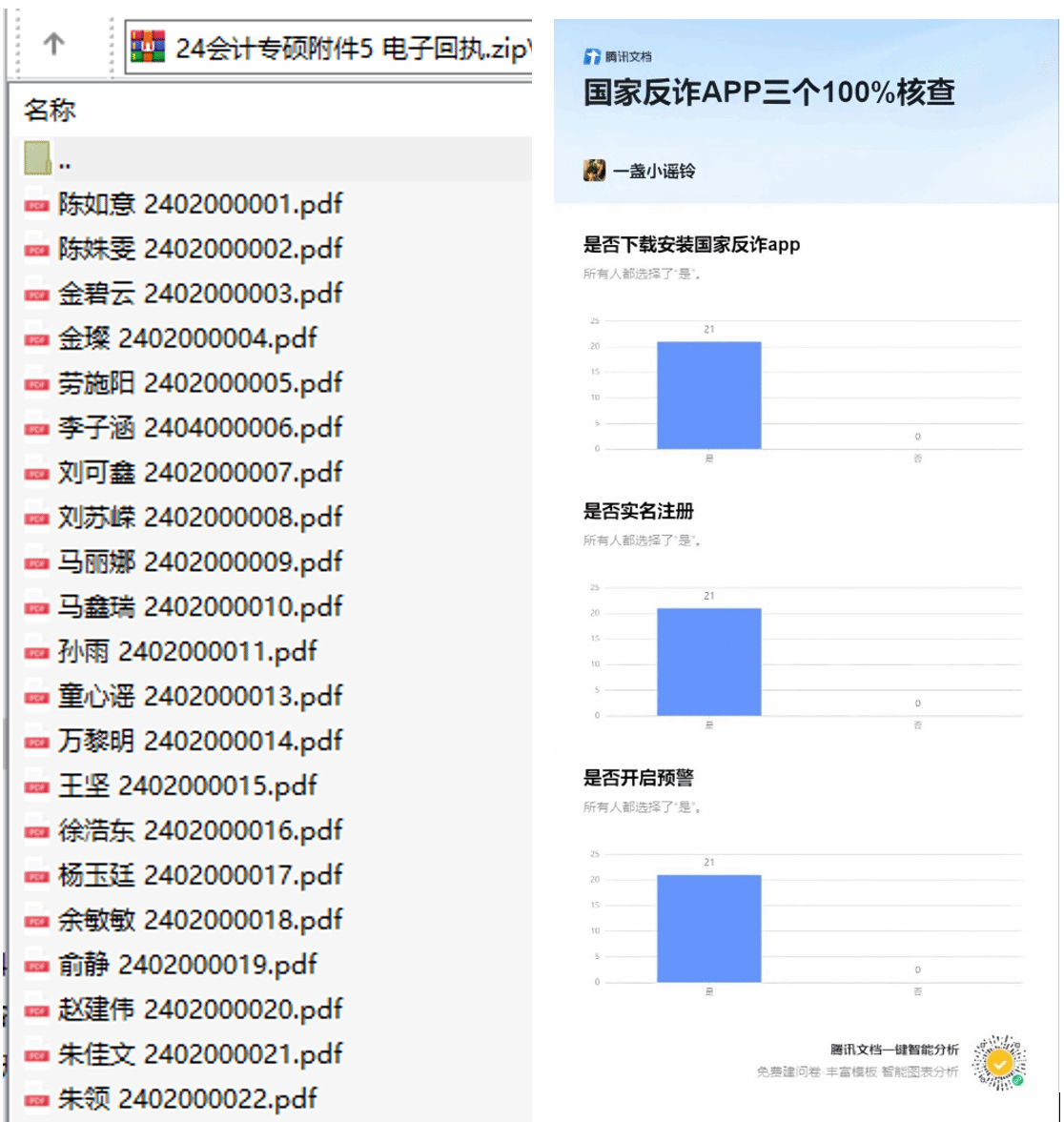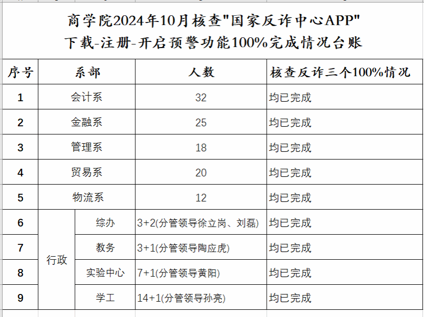 学生防范电信网络诈骗宣传教育记录表》,通知家长《防范电信网络诈骗告知书》并回收告知书电子回执,开展"国家反诈中心APP"下载-注册-开启预警功能100%完成情况核查。