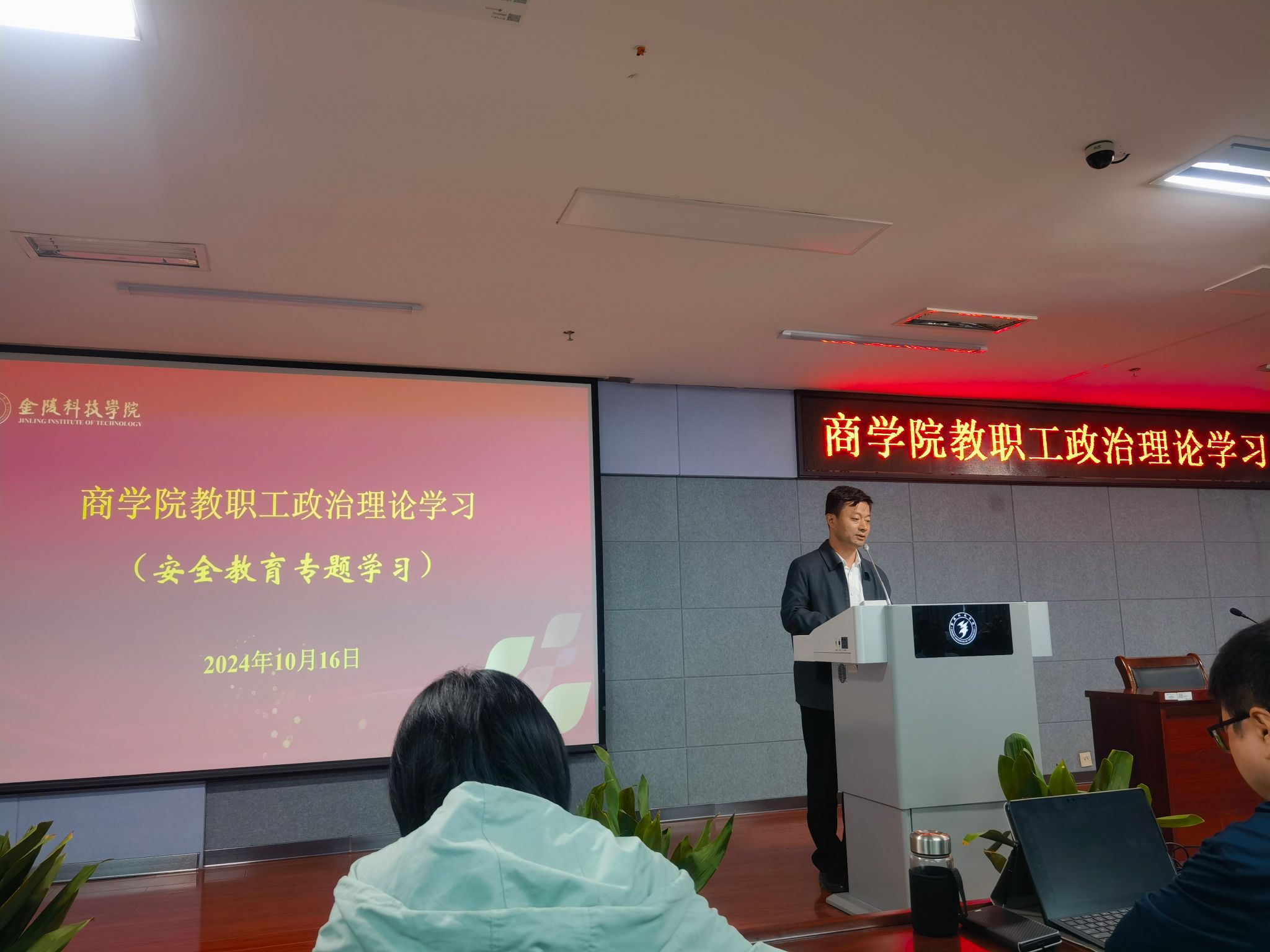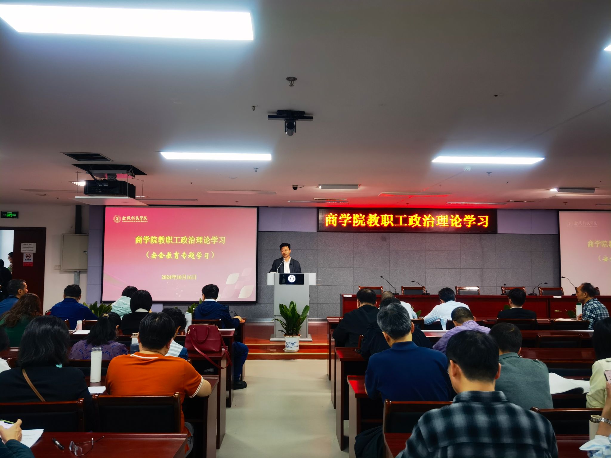 全体教职工在科技楼3号楼313报告厅集中,进行“安全教育专题”的教职工政治理论学习,徐立岗书记主持并主讲,学习内容涉及各方面的安全工作,包括意识形态安全,日常隐患防范,以及防范电信网络诈骗方面的案例学习和安全提醒。