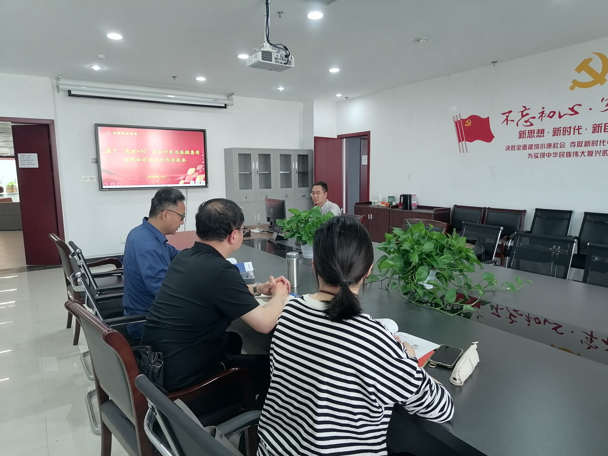 2023年05月19日,下午13:30-16:00,应“党建+N”的江苏省样板党支部建设要求,在科技楼三号楼401会议室,组织了会计系与浪潮集团校企合作洽谈会,会计系书记聂卫东、主任刘小萌、副主任刘源参加。