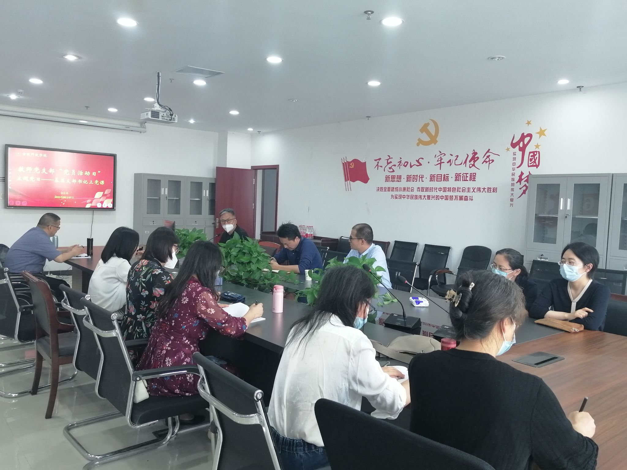 2023年06月07日下午,按照学院主题教育工作安排,会计系教师党支部在科技楼三号楼401会议室,组织了基层支部书记上党课活动,会计系全体教师党员参加。
