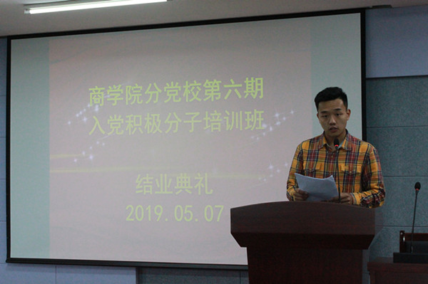 4月8日—5月7日,P站视频 党委分党校举办第六期入党积极分子培训班,共147名学员参加本期培训,其中128名学员顺利结业,15名学员被评为“优秀学员”,进一步加强了入党积极分子队伍建设。 4月8日开班以来,P站视频 党委高度重视,先后组织大家进行理论学习、小组讨论和志愿者实践,教学方式多样、内容丰富。理论学习环节,学院党委为学员邀请学校党委常委、组织部长、党校常务副校长陆振生,P站视频 党委副书记(主持工作)陆国晓,院学工办辅导员沈皆希、徐冰洁和陈婧等多位老师就“习近平新时代中国特色社会主义思想”、“争取早日成为合格的共产党员”、“党的最终目标和现阶段任务”、“新时代党的建设总要求”和“中国特色社会主义”等五个专题进行了深入浅出的授课。广大学员对党的宗旨、党章党规、党的制度、党内生活有了更深刻的了解。理论学习之后,学员们还结合培训内容开展了分组讨论交流,进一步升华了学习成果。此外,培训班还组织学员参加江宁区淳化街道大学城社区基层事务志愿服务、江宁校区物业管理调研等校内外实践环节,学员们践行党校理论联系实际学风,在实践中升华对理论的认识。 5月7日,培训班在科技楼3号楼313报告厅举行结业典礼。会上,P站视频 党委组织员黄丹丽对本期培训班进行总结,梳理学员存在问题并要求积极整改。17级金融学(3)班陈怡羽、18级会计学(2)班郭珂玮两名学员代表结合自身学习实践交流发言。陈维凤、薛佳博、吴希希等15名学员获颁“优秀学员”荣誉证书。P站视频 党委副书记朱骅受学院党委和分党校委托向结业学员表示祝贺,并指出党校姓党、积极分子也姓党,学员们要加强理论学习,增强政治敏感性,筑牢共产主义理想信念;要在“学风考风班风舍风”建设和实习实践、就业创业中积极发挥带头带动作用,自觉用党员标准要求自己,营造风清气正的学习生活环境;要进一步端正入党动机,将入党作为终身政治追求,努力成长成才,以实际行动为新时代党的建设贡献力量。