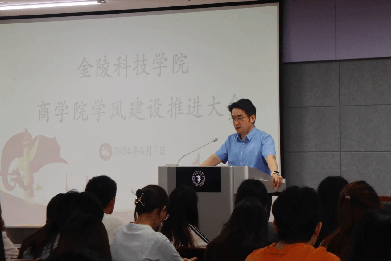学风建设模式、学风建设成效、当前学风建设不足、学风建设要求四个方面来展开。强调学院始终坚持以生为本、全员育人,致力于培养全面发展专业人才。 以专业实习、学科竞赛、实践调研等为抓手,引导学生积极参加“互联网+”、挑战杯等赛事,所培养的学生在挑战杯、“互联网+”等赛事中斩获佳绩。针对当前学院学风建设的不足之处,孙亮书记提出了一系列具体要求:第一,坚持“五不三带”;第二,要求党员、班委和积极分子发挥带头作用,每堂课前三排就座,上课前所有学生将手机统一放置于班级手机袋中;第三,每个班级设立一名学风监督员,确保学风建设各项政策有效执行。此外,学院还将严格执行学生违纪处分办法,积极开展学业预警,对考试作弊等行为零容忍。