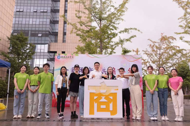 团总支书记徐冰洁的带领下,着绿色和橙色上衣的志愿者们站在主要路口,耐心地向新生们提供引导、指示和答疑。