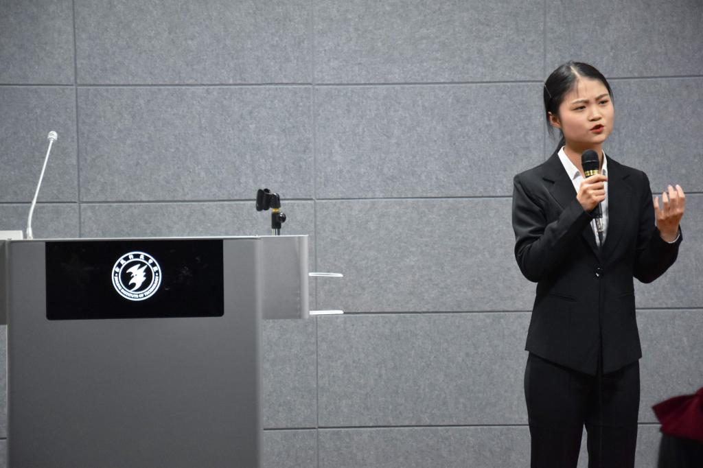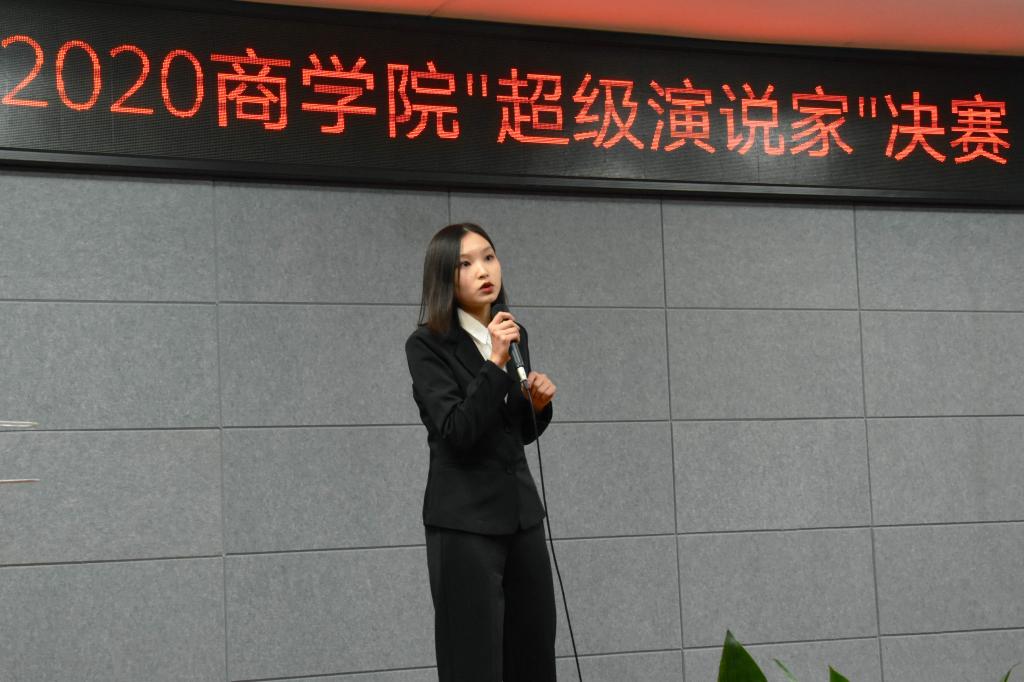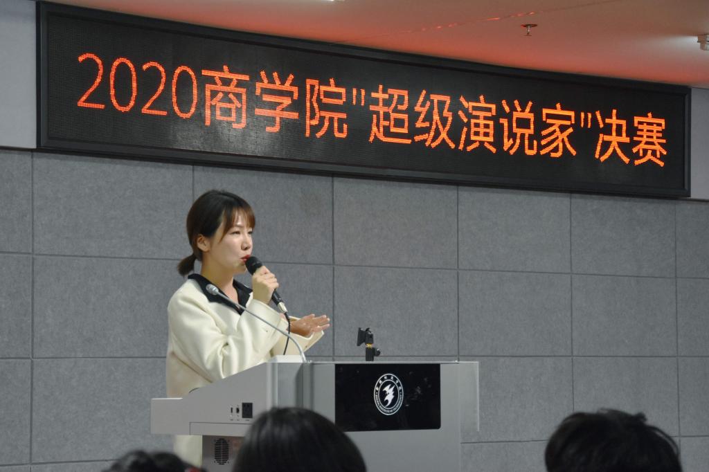 高度重视学生的文化内涵和表达能力等综合素质的培养。本次比赛共有16名选手参加,分为上下两场,上半场为主题演讲,下半场为即兴演讲。主题演讲由选手从指定题目中进行选择作为参赛主题并进行准备。上半场比赛中,选手们妙语连珠,他们优美的声音,激昂的语调,流畅的幻灯片,把现场气氛一次又一次地推向高潮,在场的观众和评委享受着这一视听盛宴。选手们各有各的风彩,评委团精准的点评了选手们的优缺点。通过评委的点评和评分团的计算,八位选手晋级了下半场比赛。下半场比赛由台下的八位幸运观众随机抽题,选手们按顺序进行即兴演讲,在即兴演讲环节中,同学们的灵活反应赢得了观众的阵阵掌声。展示完毕后,评委对选手的表现做了高度的评价,同时与大家分享了自己在演讲方面的心得体会,并对选手们提出了更高的要求。经过激烈的角逐,国际经济与贸易(1)班的李梦宇同学脱颖而出,成为了本次的超级演说家,比赛最终在徐玲钰主席的总结讲话后圆满结束。