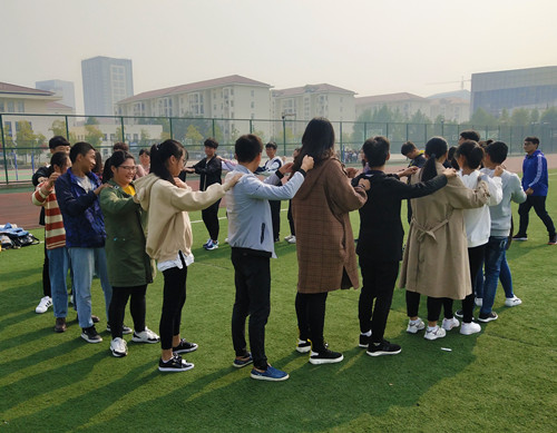 本次活动主要通过做游戏的方式开展,寓教于乐,使各班同学们在轻松快乐的氛围中推进团队合作、增进集体意识。活动开始前主持人向同学们介绍游戏规则和注意事项,讲解其目的与意义。活动主要围绕六个部分展开——“滚雪球”、“轻柔体操”、“大风吹”、“情有千千结”、“一块五毛”、“同舟共济”。“滚雪球”项目让同学们熟悉了彼此的名字、家乡和喜好。在“轻柔体操”、“大风吹”活动中,所有同学手拉手围成一个大圈进行活动,放下忧虑,消除隔阂,释放自我。“一块五毛”和“同舟共济”两个环节充分考验了同学们的团队协作能力,每位同学都积极地融入到班集体中,共同完成任务。活动现场气氛热烈,同学们参与热情高。