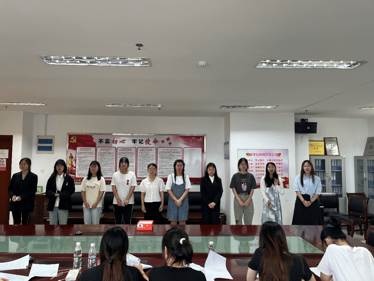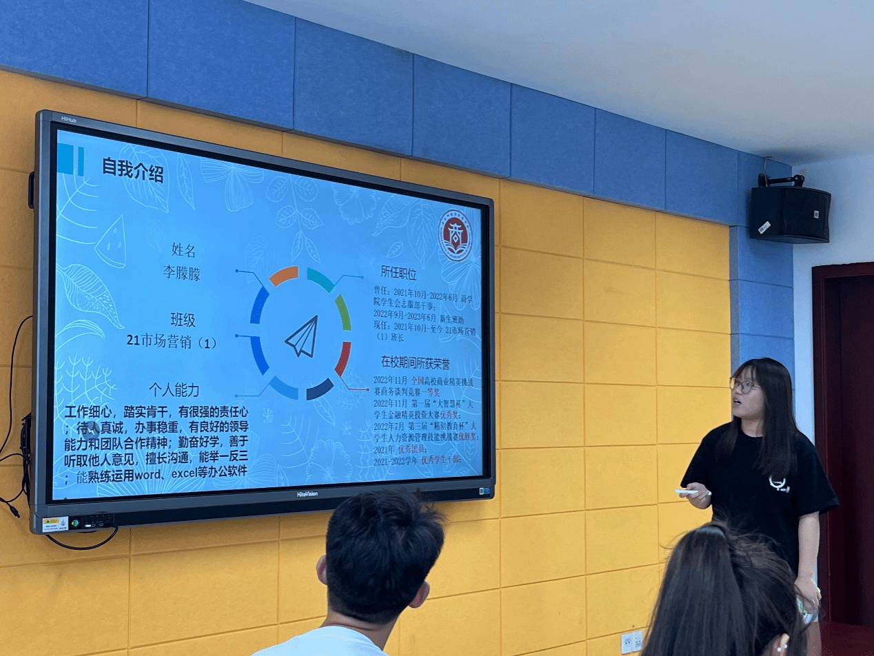 团总支书记徐冰洁老师介绍选拔程序、选聘标准和注意事项,本次面试按照专业顺序分组进行,每组选手依次演讲,随后抽题作答,最后老师对相关同学进行提问。