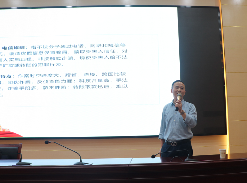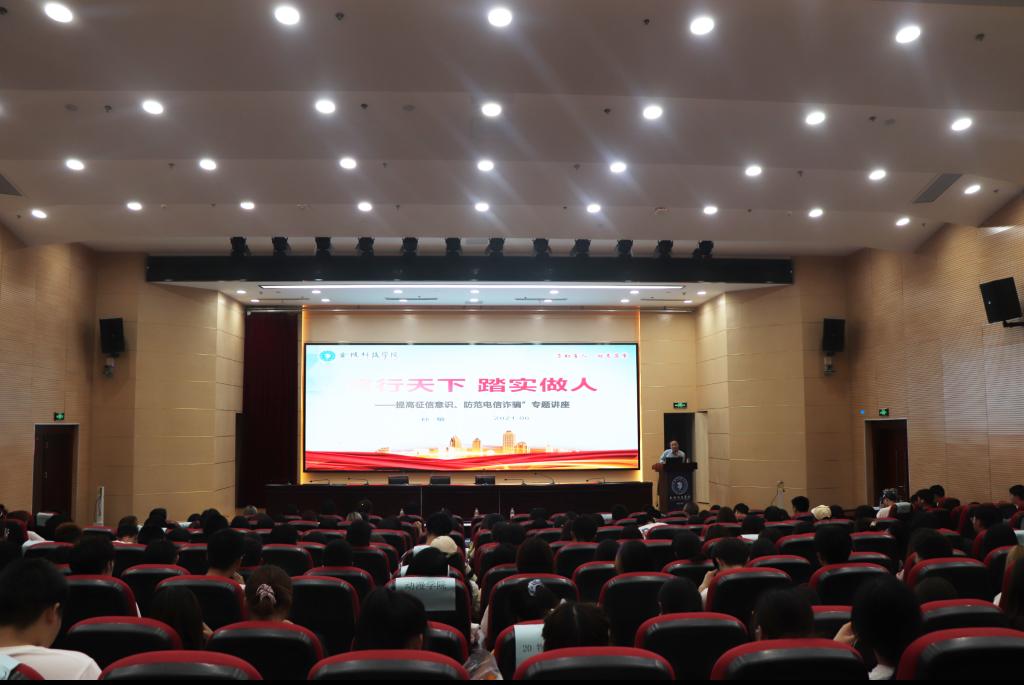 孙敏主要从认识征信内容、提高反诈能力、树立正确观念三个方面进行讲解。首先,就征信概念、征信报告的产生和用途、征信产生逾期的后果、如何保持良好的个人征信等内容向同学们作了详细的介绍。然后,他引用大量实例讲解“校园贷”、“刷单”诈骗、助学金诈骗等电信诈骗形式及防范方法。最后,他指出要做到诚信做人、防范诈骗最根本的是树立正确的世界观、人生观、价值观,追求高尚的人生,才能理性消费,避免掉入层出不穷的骗局。