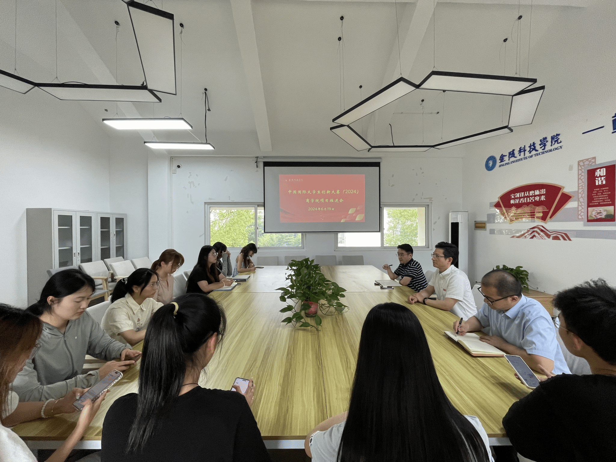 在学校江宁校区南01栋一站式学生社区召开中国国际大学生创新大赛(2024)项目推进会。院长刘磊、党委副书记孙亮、副院长黄阳出席会议并讲话,相关老师、参赛项目学生代表参加会议。