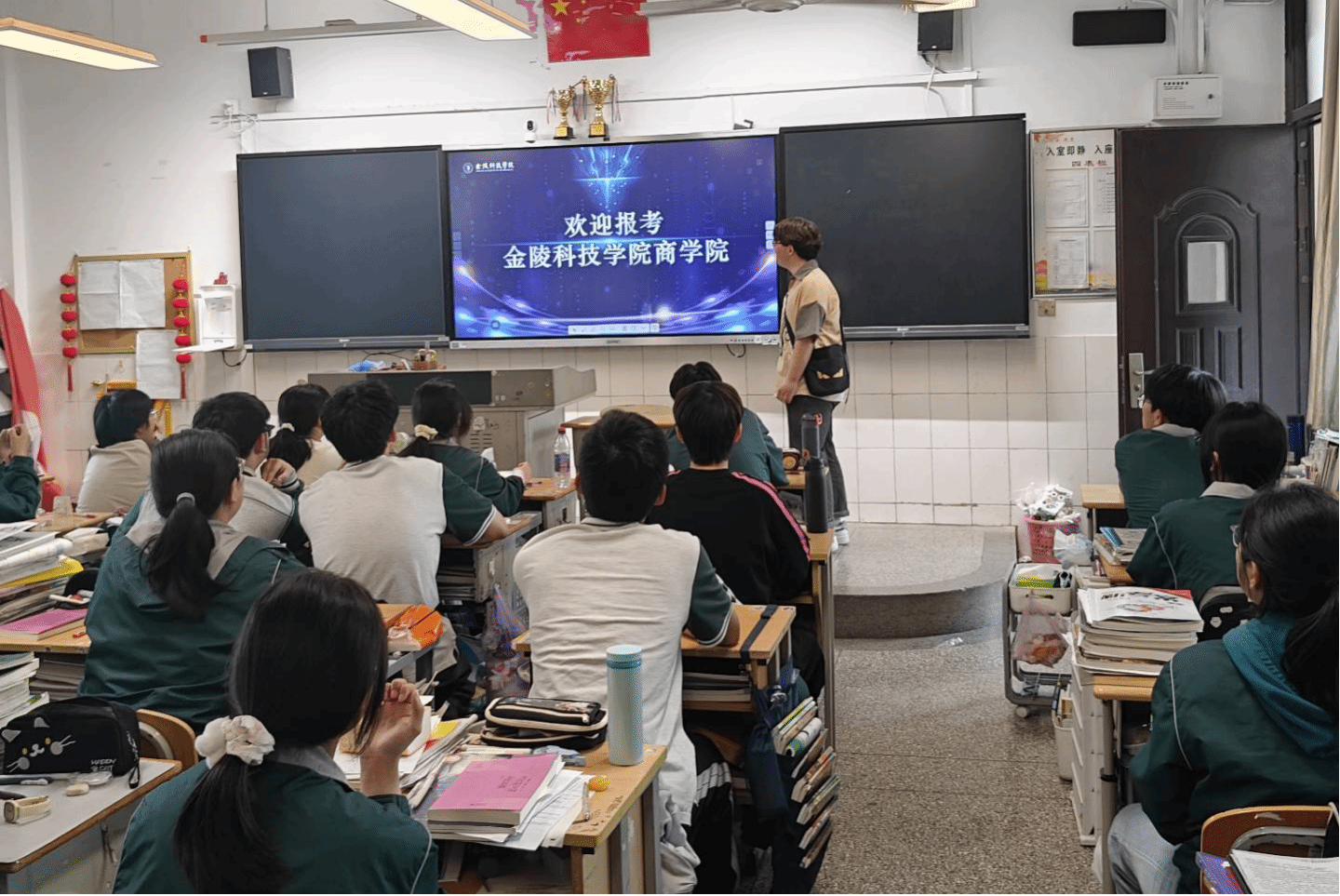 组织优秀学生代表返回高中母校,分别走进南京市江宁高级中学、南京市建邺高级中学、南京市第九高级中学、江苏省江浦高级中学,开展“走进大学,筑梦未来”主题宣讲活动。本次活动通过分享大学成长故事、解读专业特色、传递商科育人理念,激励学弟学妹坚定目标、逐梦前行。