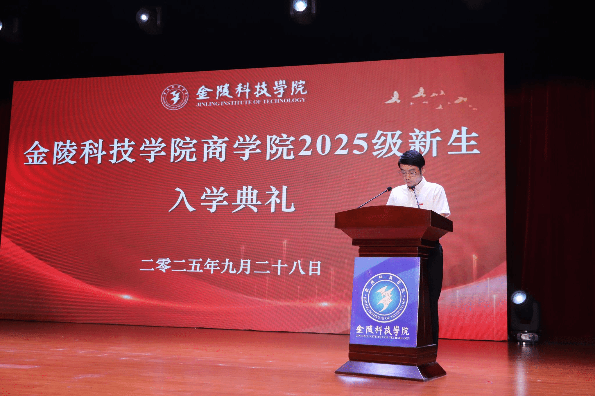 副院长陶应虎、副院长黄阳、各系部主任、教师代表、全体辅导员、校友代表、在校生代表、2025级研究生及2025级统本新生共同出席典礼。本次开学典礼由孙亮副书记主持。