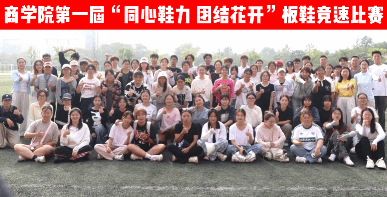 比赛现场氛围热烈而有序,赛道沿线师生驻足观赛,为参赛队伍加油助威。各参赛队伍赛前充分磨合,比赛中严格遵循规则,以高度的默契与协作向终点发起冲击。从起步阶段的节奏校准,到加速过程中的步伐同步,再到全程响亮的团队口号,每一个环节都展现出队员间的紧密配合与互助精神。不同于单人竞技项目,板鞋比赛更考验“1+1+1>3”的团队合力,队员们并肩前行,用整齐的步伐诠释着团结的内涵,用拼搏的姿态展现着商院学子的青春风采。