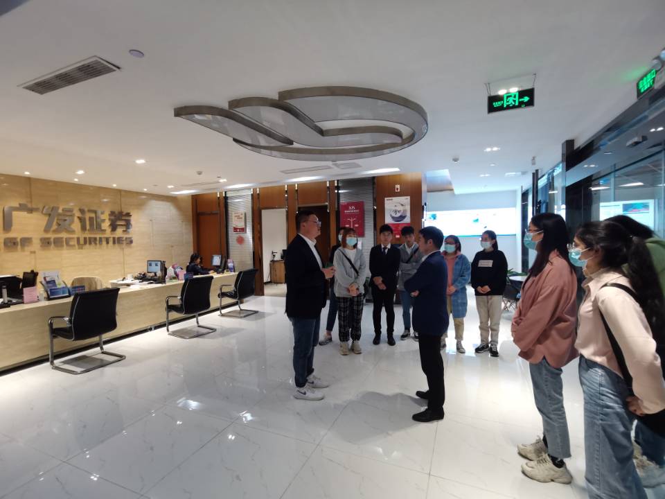 座谈会在广发证券精彩的公司介绍短片后开始。首先由营销总监方伟向我们介绍了广发证券的公司组成,通过具体详实的数据展示了作为头部券商的硬实力。蓬勃发展的零售事业部,一流的人才成长环境和极具竞争力的薪酬福利都对毕业生们产生了强大的吸引力。然后,销售部2019年入职的优秀员工季筱旭向大家分享了自己在广发证券的成长故事。从最开始自己投资股票赚钱,到进入券商学习开发客户和服务客户,再到服务客户的同时也可以更进一步地完成个人的理财规划,她的经历就是将兴趣变成职业、与客户实现双赢的最好体现。之后,翟经理和黄经理对学生们提出的工作时间、新入职员工绩效考核、客户开发途径等问题进行了耐心解答,并提醒有意向进入金融行业的在校生一定要抓住在校时间考取证券从业资格证、基金从业资格证等基本的从业证书,这也是进入金融行业的敲门砖。座谈会后,陈主管带领大家参观了公司不同部门的工作环境。最后,向有意向的同学提供了现场面试的机会。